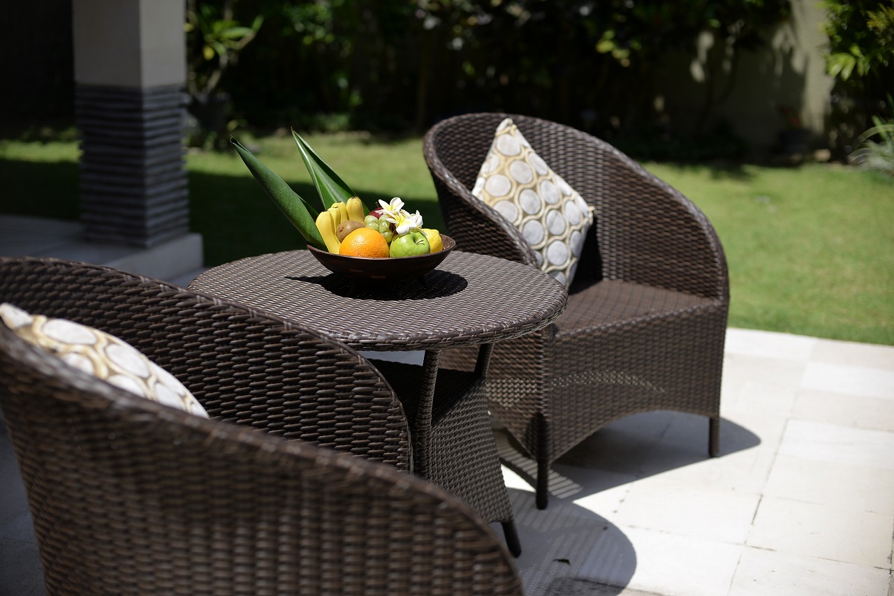 A.シンセティックラタンのガーデン家具は、水と紫外線にすぐれた耐久性ですので、屋外でもご使用可能です。
